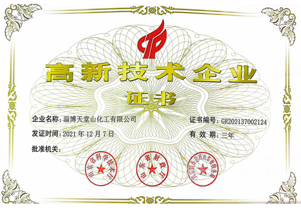 公司產(chǎn)品符合國(guó)家的產(chǎn)業(yè)政策,各種手續(xù)齊全,通過(guò)了環(huán)保、衛(wèi)生、消防、安全生產(chǎn)許可等各項(xiàng)驗(yàn)收,企業(yè)化學(xué)品安全標(biāo)準(zhǔn)化三級(jí)達(dá)標(biāo)驗(yàn)收,并且通過(guò)了ISO9001質(zhì)量管理體系認(rèn)證、ISO14001環(huán)境管理體系、ISO45001職業(yè)健康管理體系,先后被有關(guān)部門(mén)授予“市級(jí)重合同守信用企業(yè)”“消費(fèi)者滿意單位”“質(zhì)量、計(jì)量管理先進(jìn)單位”“勞動(dòng)關(guān)系和諧企業(yè)”“企業(yè)免檢單位”“淄博市專(zhuān)精特新中小企業(yè)”“山東省化工明星單位”“山東化工發(fā)展?jié)摿?0強(qiáng)”“淄博市智能車(chē)間”“山東省創(chuàng)新型中小企業(yè)”“科技型中小企業(yè)”“高新技術(shù)企業(yè)”“山東省專(zhuān)精特新”等稱(chēng)號(hào)。
